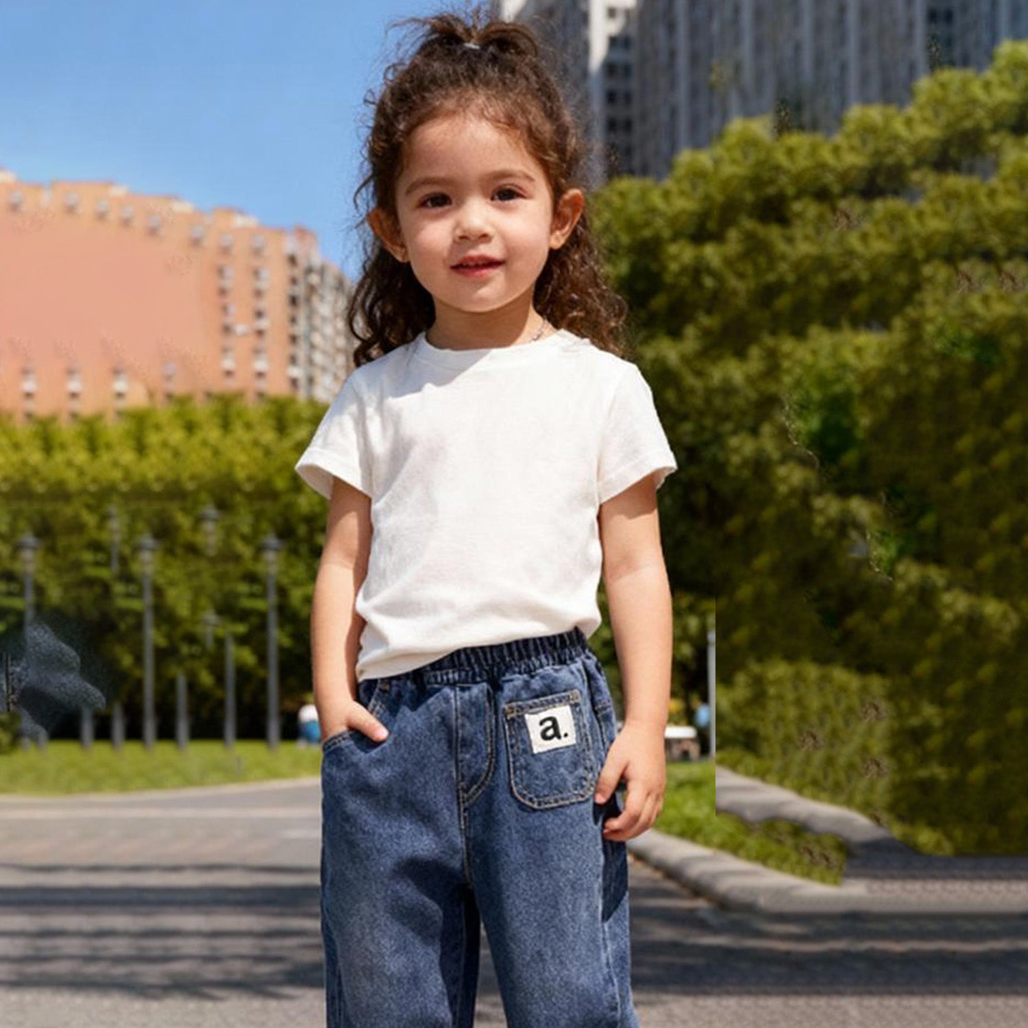 Experience all-day comfort with CozyCloud Kids Soft Denim Jeans, crafted from an ultra-buttery, flexible denim that feels gentle against delicate skin. These jeans feature a stylish washed blue hue, classic pocket detailing, and a fun “a.” patch accent for extra character, while their elasticized waistband ensures a secure fit without tightness or irritation. Perfect for playtime, outings, or lounging, these jeans offer the look of denim with the touch of a soft embrace—ideal for kids who crave both style and comfort.