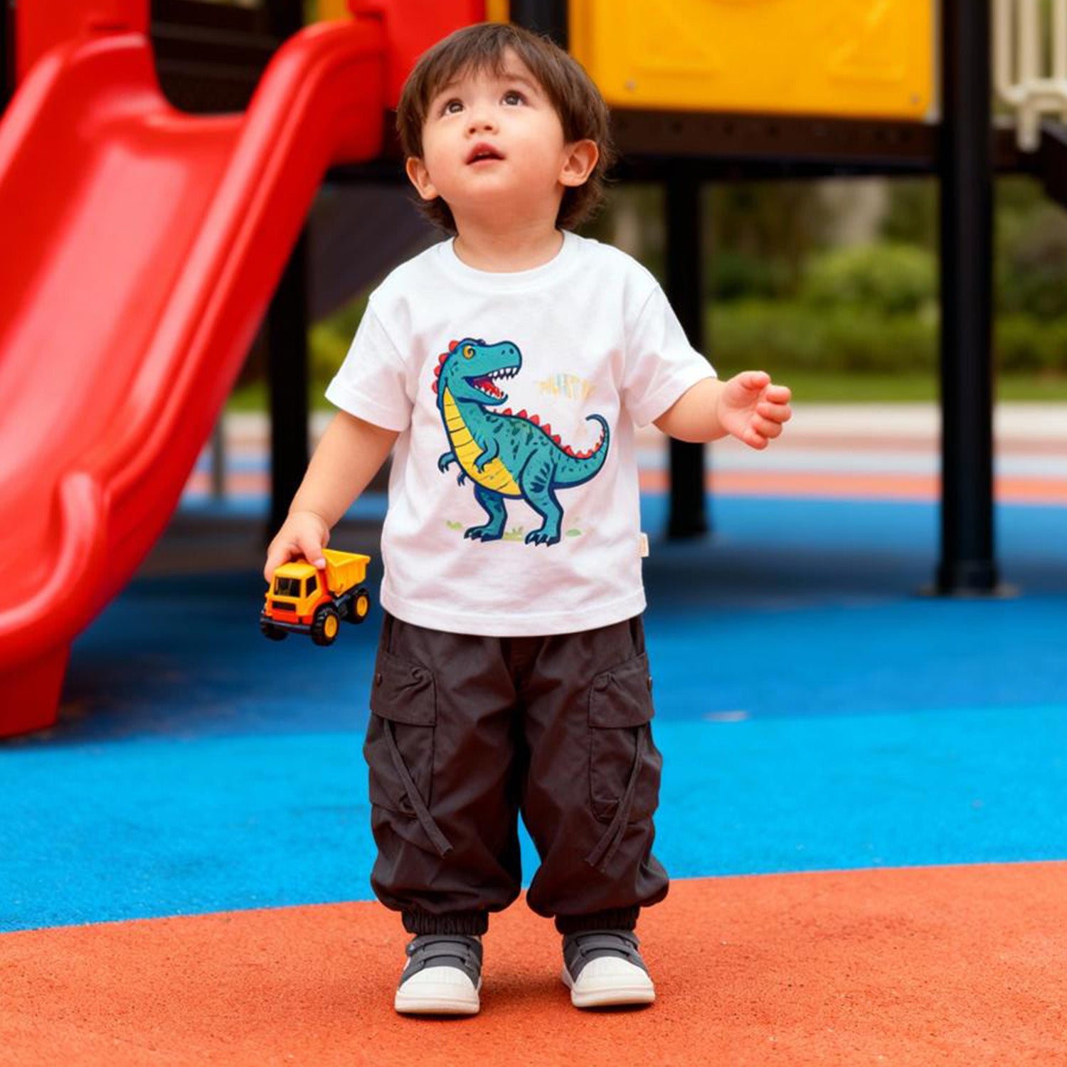 Sketch Dino Adventure Shirt & Shorts Set (White & gray)