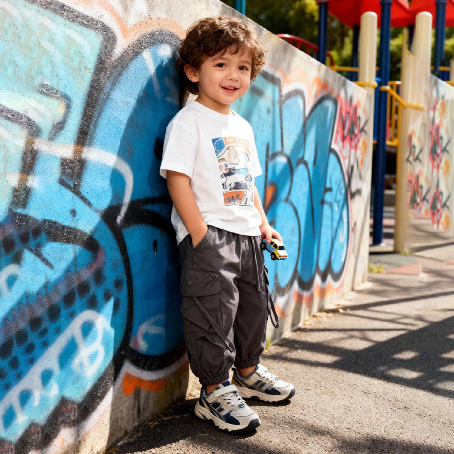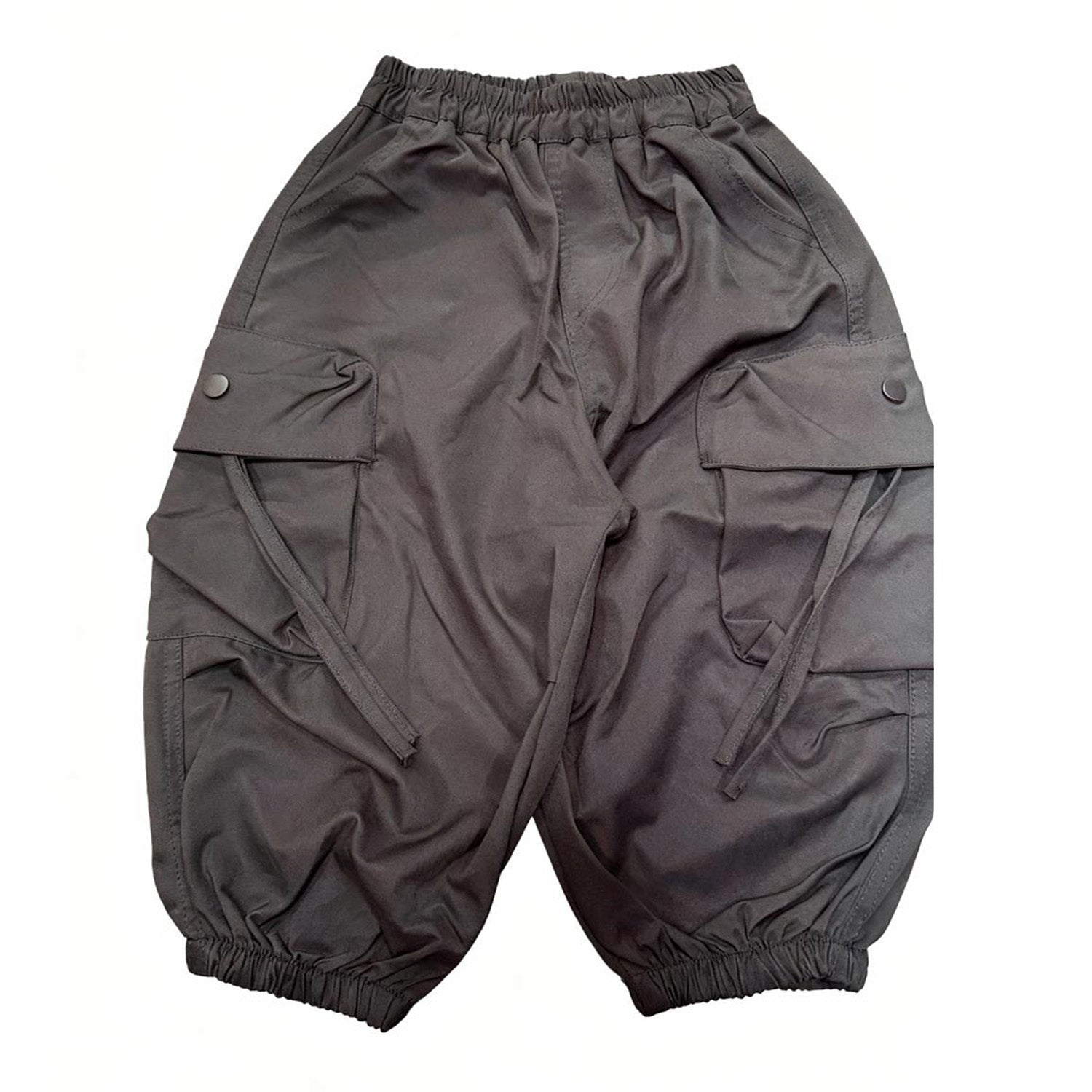 Utility Balloon Pant is crafted for bold young explorers craving maximum freedom and flair. Its roomy balloon silhouette ensures relaxed movement, while statement flapped cargo pockets with pop-button closures boost practicality and urban style. The deep black fabric is both striking and easy to match, made from premium-quality cotton for lasting durability and softness against the skin. Elastic drawstring cuffs and waistband provide a secure fit for energetic kids. Perfect for lively outings, these pants offer a fresh twist on everyday comfort and adventure.