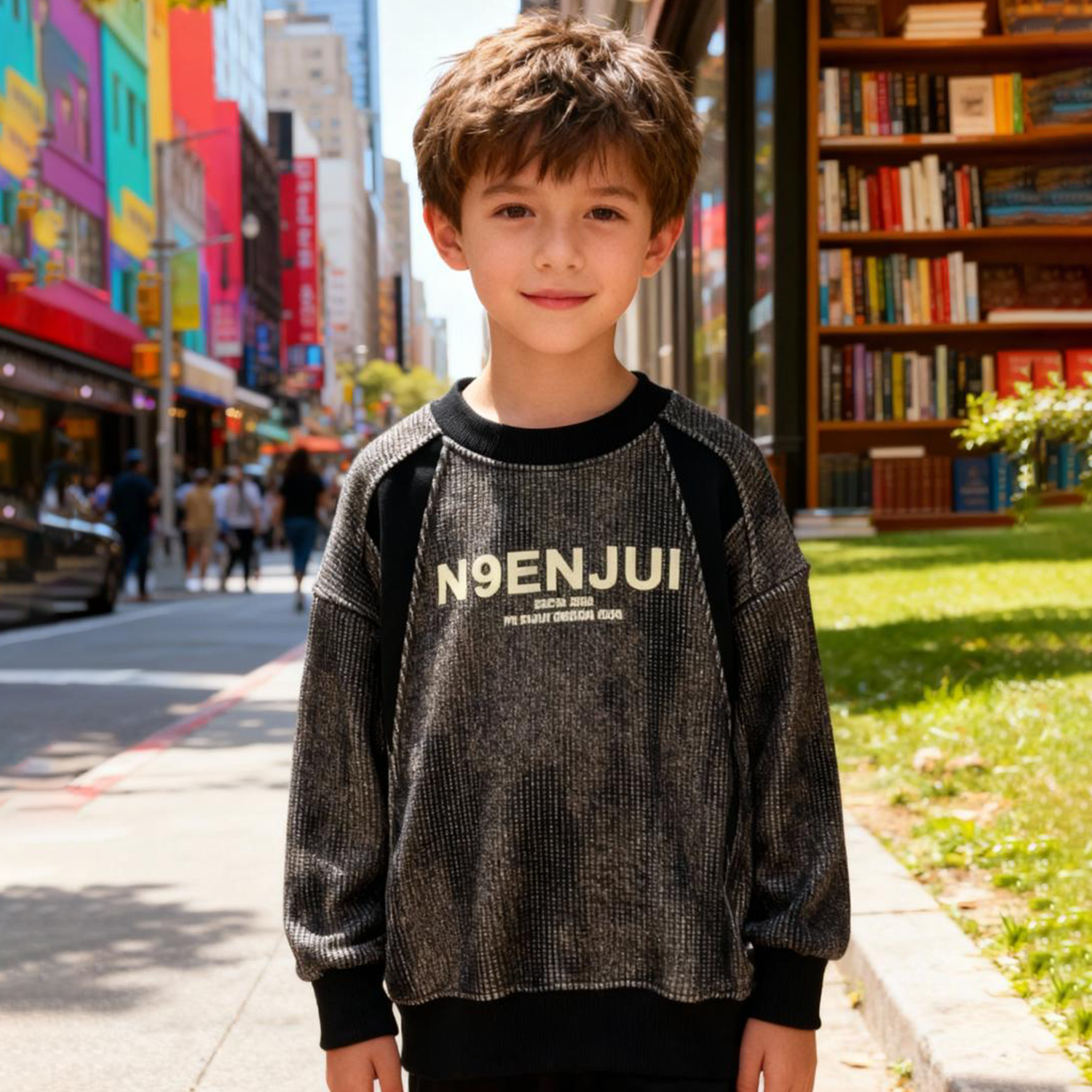 Designed to elevate winter dressing, this premium sweatshirt features a soft woolen finish on the inside for superior warmth and comfort. The rich textured tone paired with contrast black panels creates a refined, fashion-forward look that stands out effortlessly. With a relaxed fit and premium detailing, it’s perfect for kids who love to stay cozy while looking undeniably stylish—ideal for winter outings, casual days, and statement layering.