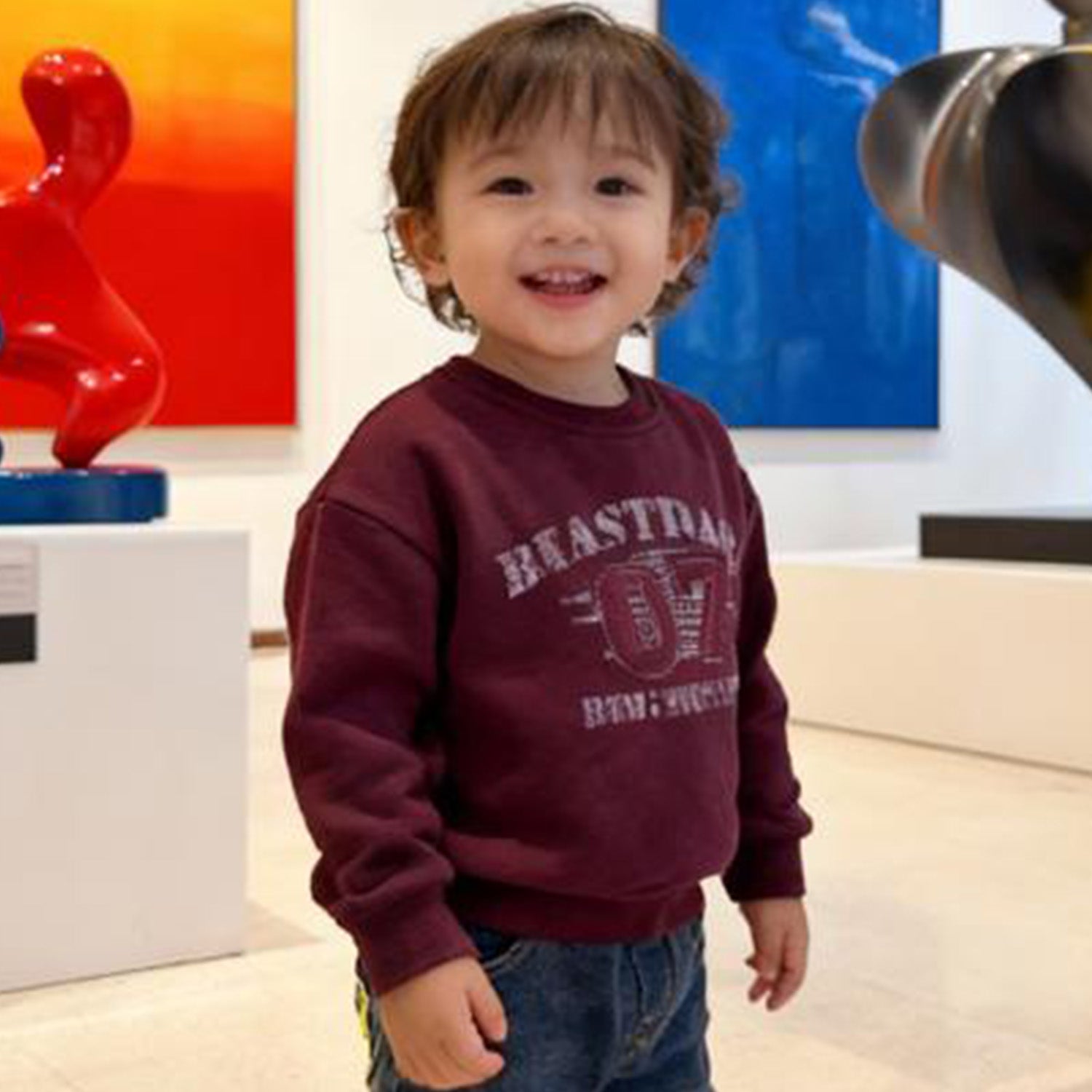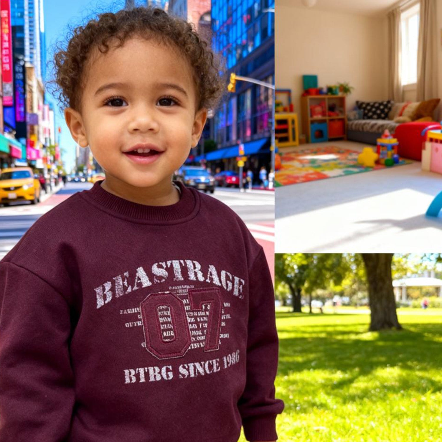 This soft premium sweatshirt comes in a rich maroon shade with a bold varsity-style chest graphic that gives a cool, college-team vibe while still feeling playful for kids. Made from a cozy cotton-rich fleece with a crew neck, ribbed cuffs, and hem, it offers gentle warmth, a smooth feel on the skin, and an easy everyday fit for outings, or relaxed weekends.